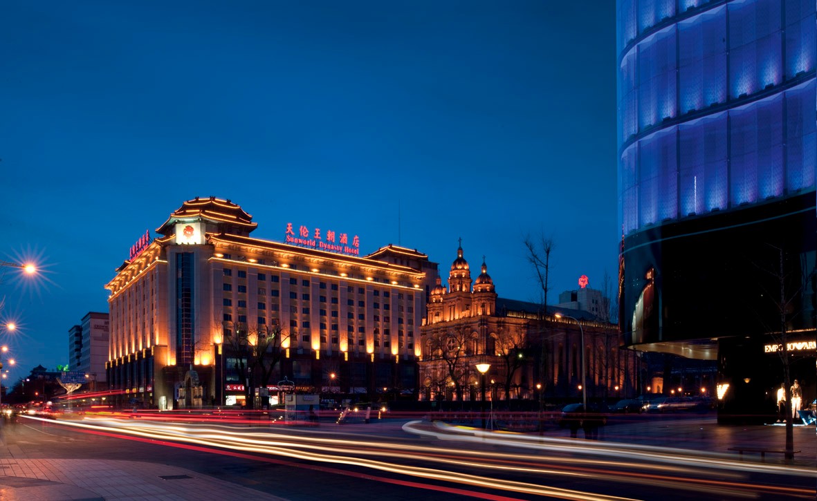 北京天倫王朝酒店地處北京市中心的王府井大街,毗鄰首都名勝古跡,步行可到達紫禁城和天安門廣場。酒店擁有395間典雅豪華的客房,適合國內(nèi)外商旅人士的住宿需求。多元化的會議場地和多功能廳可滿足5至500人的活動及宴會需求。盛華瑄中餐廳為賓客精心呈獻經(jīng)典粵式及北方特色美食,開放式中庭西餐廳-王朝廣場,匯聚國際美食自助餐和中西式佳肴??禈分行脑O有自然光線的室內(nèi)恒溫游泳池、棋牌室、健身房和美容美體中心。優(yōu)越的中心位置及周邊便捷的交通方式定讓您輕松商務,方便游覽文化古城,并從中感受傳統(tǒng)濃郁的北京風情。
