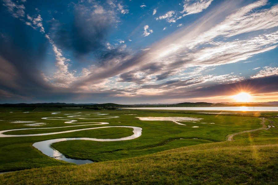 灤河神韻風(fēng)景區(qū)位于沽源縣城東北二十公里處,北依轉(zhuǎn)佛山,南臨茫茫金蓮川大草原,東有轉(zhuǎn)佛廟,西望草原湖,遙遙相對(duì)的是元代“小宏城遺址”(金蓮川幕府)。這里水草豐美、風(fēng)景秀麗、氣候涼爽,歷史上曾是北魏御夷鎮(zhèn),遼、金、元?dú)v代帝王游獵避暑的圣地,被康熙大帝御贊為“八百里金蓮川百花爭(zhēng)艷”的精品部落。 灤河神韻源頭閃電河蜿蜒流轉(zhuǎn)、九曲十八彎是大自然鬼斧神工的神韻之筆而得名,全縣生態(tài)旅游的品牌景點(diǎn)。景區(qū)總面積34.3公頃,是全縣60萬(wàn)畝濕地草原的代表。濕地內(nèi)有野生植物210種,陸生脊椎動(dòng)物222種,其濕地類型、景觀及生物多樣性在草原濕地中具有較強(qiáng)的典型性和代表性。